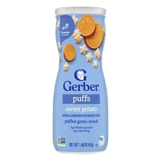 Gerber Snacks for Baby Grain & Grow Puffs Puffed Grain Snack 8+ Months Sweet Potato 1.48 Ounce -42 g All Gerber Products are procured order arrival basis and are pre orders. Please do not place orders if required on aurgent basis.