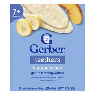 Gerber Teethers Gentle Teething Wafers 7+ Months Banana Peach 12 Individually Wrapped 2-Packs 0.14 Ounce -4 g Each All Gerber Products are procured order arrival basis and are pre orders. Please do not place orders if required on aurgent basis.