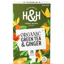 Heath & Heather Organic Green Tea with Ginger 20 Tea Bags