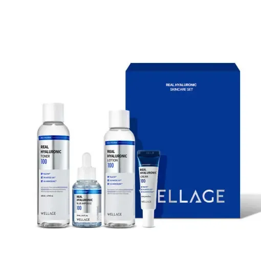 Wellage Real Hyaluronic Skincare Set (Toner 200ml + Ampoule 30ml + Lotion 160ml + Cream 10ml)