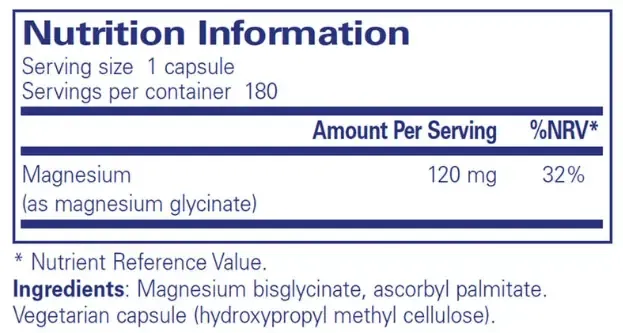 Pure Magnesium (glycinate) is a highly bioavailable magnesium chelate that is well tolerated and suitable for sensitive individuals. Pure Encapsulations Magnesium (Glycinate) gives you 240 mg of magnesium in each serving of two vegetarian capsules