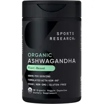 Sports Research® Organic Ashwagandha Adaptogen for Relaxation, Calm & Sleep Support Made with Organic KSM-66® 600 mg Non-GMO Verified, Gluten-Free, Certified Vegan 90 Veggie Capsules