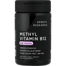 Sports Research® Vitamin B12 as Methylcobalamin 2000mcg - Plant Based B12 w/Coconut MCT Oil for Energy Metabolism Support - Vegan Certified · Non-GMO · Gluten Free - 120 Liquid Caps