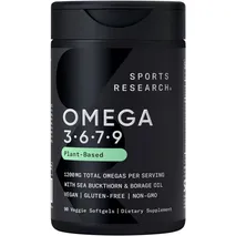 Sports Research® Vegan Omega 3-6-7-9 - 1200 mg of Multi-Spectrum Omega Fatty Acids Certified Non-GMO Formula with Sea Buckthorn & Borage Oil - 90 Veggie Softgels