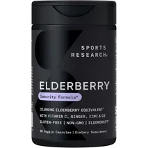 Sports Research® Daily Immune Support Elderberry with Zinc, Vitamin C, Ginger & Vitamin D3 5000iu - Gluten Free · Non-GMO Verified · Soy Free - 60 Veggie Capsules