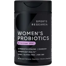Sports Research Women's Probiotics with Prebiotics, 65 Billion CFU - Vegan Capsules for Gut Health & Digestive Support, Probiotics for Women with Cranberry - Non-GMO Verified & Gluten Free - 30 Count