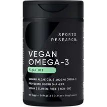 Sports Research Vegan Omega-3 Fish Oil Alternative from Algae Oil - Highest Levels of Vegan DHA & EPA Fatty Acids | Non-GMO Tested & Vegan Certified - 60 Veggie Softgels (Carrageenan Free)