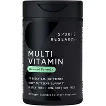 Sports Research® Multivitamin Advanced Formula - 23 Essential Vitamins & Minerals with CoQ10 & Iodine - Daily Nutrient Support*- Non-GMO Tested & Gluten-Free -60 Veggie Capsules