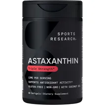 Sports Research® Triple Strength Astaxanthin 12mg w/Organic Coconut Oil - Antioxidant Supplement for Skin & Eye Health Support* - Soy Free · Non-GMO · Gluten Free - 60 Softgels