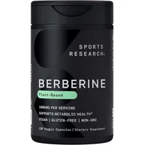 Sports Research Berberine - Herbal Ayurvedic Metabolic Health Support - 500mg - 120 Capsules - Vegan Certified, Gluten-Free, Non-GMO