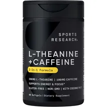 Sports Research L-Theanine Supplement with Caffeine & Coconut MCT Oil - Focused Energy, Alertness & Relaxation Without Drowsiness - 200mg L Theanine, 100mg Organic Caffeine - 60 Liquid Softgels