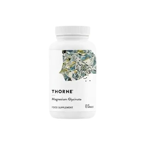 Thorne Magnesium Glycinate delivers magnesium in a chelated, easily absorbed form that’s gentle on the stomach — a smart choice for daily supplementation when dietary intake may be insufficient. Each capsule delivers magnesium as magnesium glycinate, a compound that combines magnesium with the amino acid glycine to maximize bioavailability and minimize digestive discomfort. Regular use can help support normal muscle function, maintain healthy psychological balance, and reduce tiredness and fatigue — helping you stay energetic and balanced throughout the day. Because magnesium plays a critical role in hundreds of biochemical processes (including muscle contraction, nerve signalling, and energy production), this supplement is particularly useful for individuals with active lifestyles, high stress levels, or those struggling to meet recommended magnesium intake through diet alone. Manufactured and tested under strict quality controls, Thorne ensures third‑party testing for contaminants, making this product a trusted choice for those who prioritise purity and safety.
